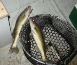 The biggest fish tonight was a healthy 22 incher. The fun thing that happened tonight was I got a true double...that is, two fish on one crankbait, each one on a set of trebles. All fish were released tonight to fight again another day, which was a good idea because after the rough ride in and the roadtrip home, I was glad I didn't have fish to clean.