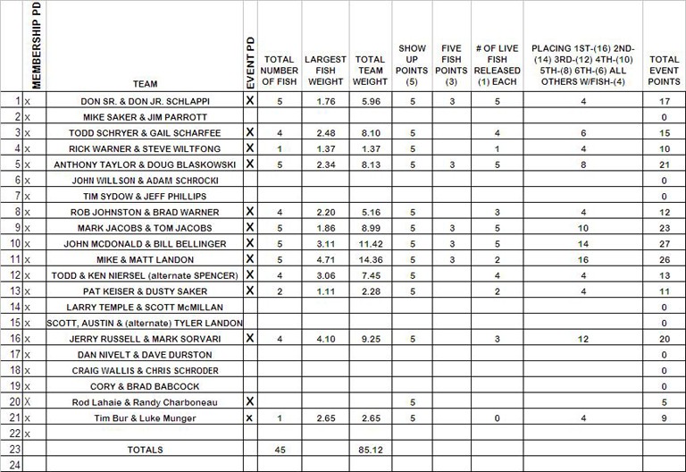 1st Place: Matt and Mike Landon (sub: Jake Brandau) 5 fish, 14.36 lbs.
